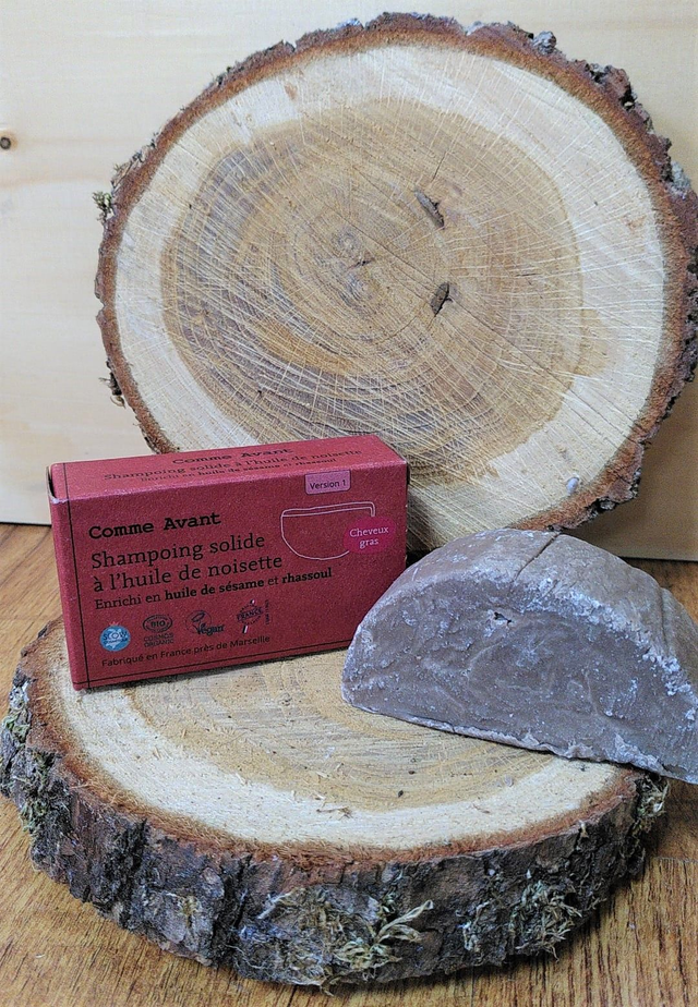 La version "cheveux gras" est enrichie en huile de sésame et rhassoul et est idéale pour les cuirs chevelus à tendance grasse.