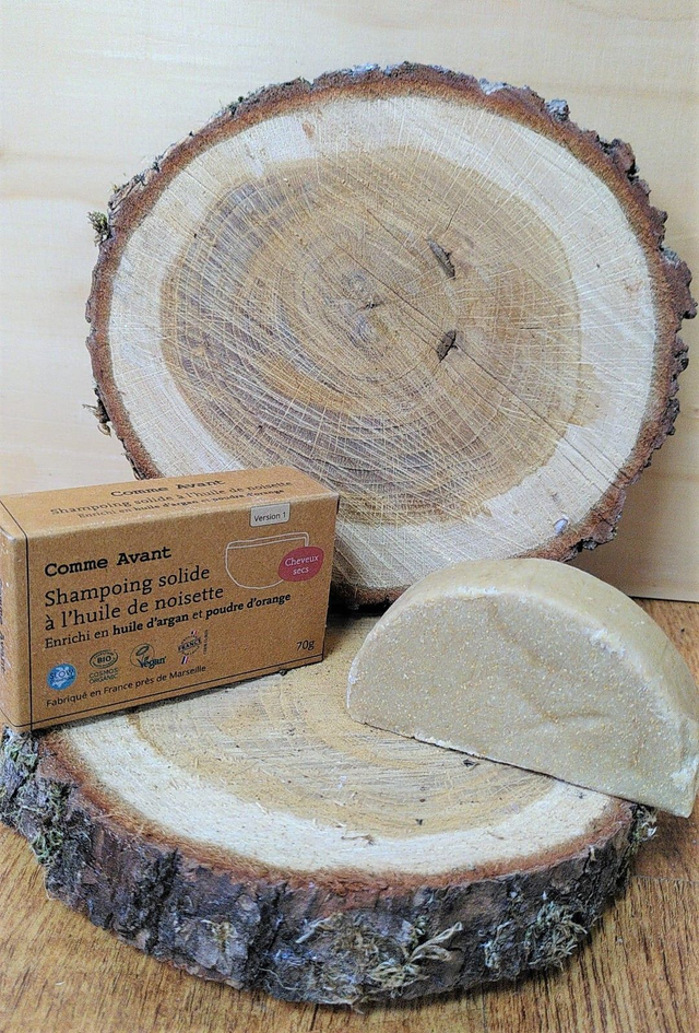 La version "cheveux secs" est enrichie en huile d'argan et poudre d'orange. l'idéale pour les cuirs chevelus secs.