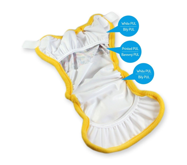 Culotte évolutive (5-16kg) avec fermeture à velcro ou à pressions. Deux rabats à l'intérieur permettent de maintenir l'insert absorbant. Les bords de la culotte sont en polaire tout doux!