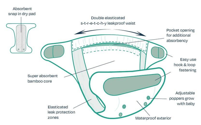 Fabriquée en UK avec des tissus certifiés Oekotex et du PUL recyclé